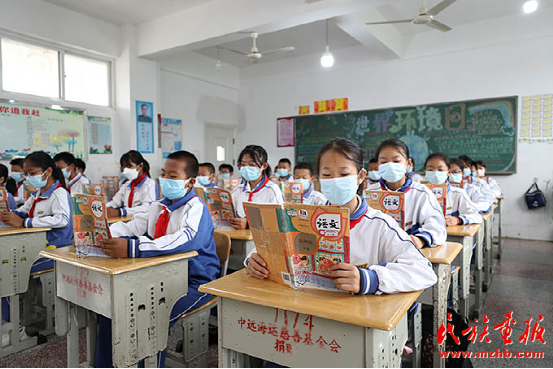 孩子們使用國(guó)家通用語(yǔ)言文字統(tǒng)編教材。