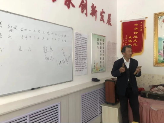 南文述從小酷愛音樂,深感傳統(tǒng)音樂的魅力,為了讓千年古韻律更好地綻放光彩,潤澤當?shù)厝罕姷木袷澜?,南文述退休后長年收集、整理古樂曲相關資料,學習、傳承古樂曲演奏,在全縣范圍內(nèi)共收集到七十余首。商都縣大力挖掘和保護文化遺產(chǎn)工作開展后,為南文述免費提供了工作室,南文述在此開辦了民族樂器培訓班,為感興趣的群眾義務教學。目前已有學員60余人,2022年古樂曲申報成功為第七批內(nèi)蒙古自治區(qū)級非物質(zhì)文化遺產(chǎn)代表性項目,在當?shù)厝罕娚顚拥木褡非笾邪l(fā)揮著越來越重要的作用。
