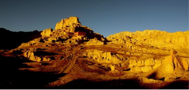 黃昏時(shí)分,我們進(jìn)入阿里札達(dá)縣,象泉河谷的臺地上,一座頹敗的天降塔驟然闖入視線,讓人猝不及防地一步便踏入歷史中。在雪域高原的梵天佛地里,佛塔觸目皆是——天降塔、菩提塔、噶當(dāng)塔等。踏上阿里的土地,你勢必遭遇一個又一個的廢墟,滿目蒼涼又讓人心生崇敬。那個曾經(jīng)重啟青藏高原信仰時(shí)代的偉大王朝,早已埋沒在時(shí)間的塵埃里,只留下這些日漸風(fēng)化的紀(jì)念碑,講述著它曾經(jīng)的奇跡和宿命。