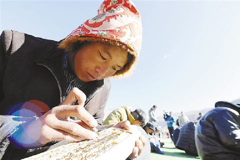 普松是著名的“雕刻之鄉(xiāng)”。雕刻在尼木縣普松鄉(xiāng)有著悠久的歷史,是普松鄉(xiāng)群眾世世代代傳承下來(lái)的一項(xiàng)古老技藝,作為在全區(qū)享有盛譽(yù)的傳統(tǒng)技藝,雕刻藝人在長(zhǎng)年累月的鉆研過(guò)程中不斷對(duì)其進(jìn)行豐富和發(fā)展。普松雕刻形式多樣,應(yīng)用廣泛,不僅有單一的文字雕刻,還有圖文并茂的圖案;不僅應(yīng)用于藏傳佛教活動(dòng),還應(yīng)用于印制經(jīng)幡,西藏很多山口懸掛的經(jīng)幡,都是用普松雕版印制的,在拉薩市場(chǎng),它們占有90%的份額。(記者 旦增)