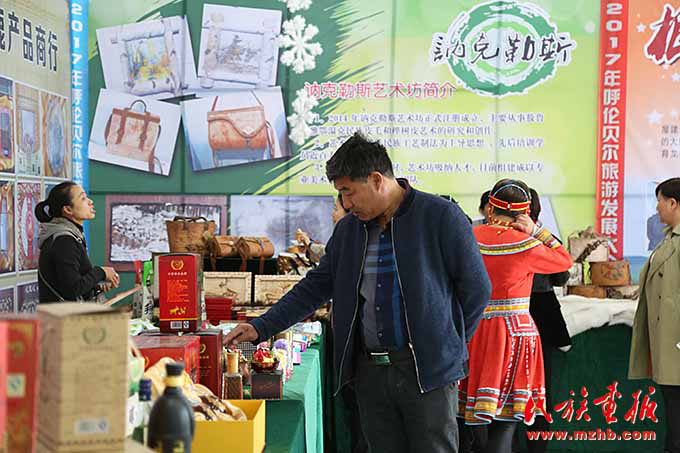 呼倫貝爾市旅游發(fā)展大會(huì)上,民族特色產(chǎn)品受到游客的歡迎