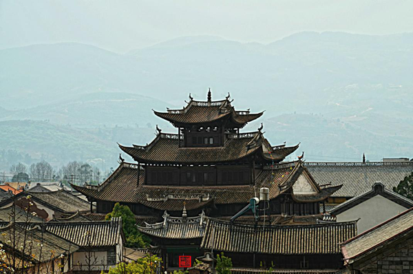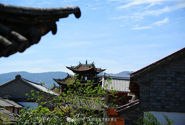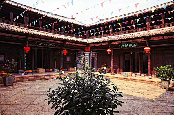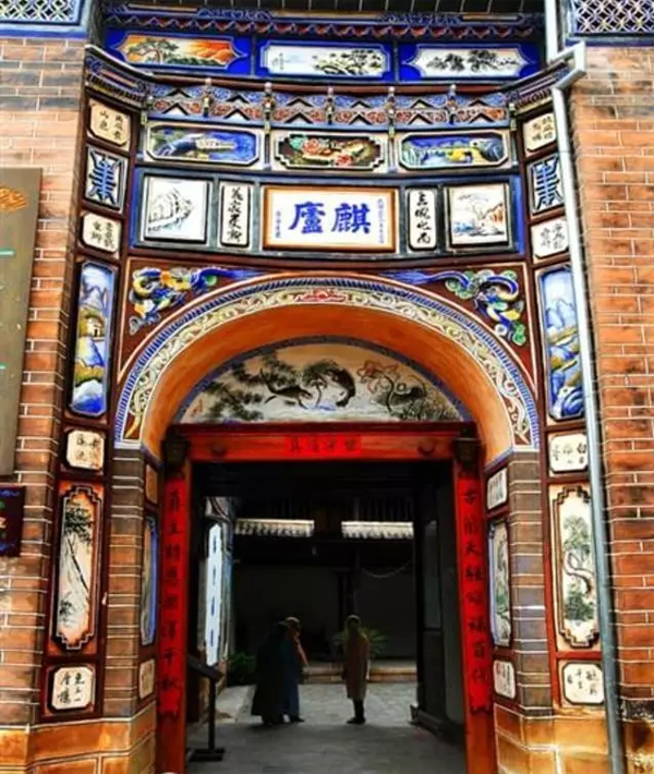 雖然經(jīng)過歲月侵蝕,但院落的每一個(gè)角落,無論是精心裝飾的門楣還是匠心獨(dú)具的花窗,盡管經(jīng)過了多少年的風(fēng)雨,依然令人感到當(dāng)年的氣魄和獨(dú)有的魅力。在馬如驥大院的二樓,那藻井的彩繪今天依然清晰美麗,有彩繪《三文筆》、《阿文學(xué)?!?、《雞足山莊嚴(yán)塔》、《上海街景》。特別是彩繪《上海街景》,被專家視為不可多得的珍貴資料,它不僅惟妙惟肖的再現(xiàn)了當(dāng)年十里洋場(chǎng)上海灘的風(fēng)華,還體現(xiàn)了馬幫商人的開放胸襟和開闊眼界,體現(xiàn)了對(duì)現(xiàn)代化生活的向往和對(duì)未來的憧憬。