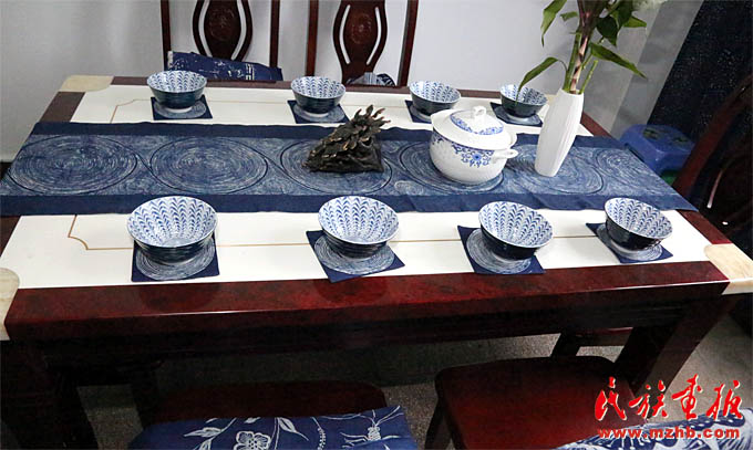 楊文斌老師和她的夫人梁定芳老師都是“非遺”傳承人。現(xiàn)在他們忙著著書(shū)、講學(xué)、開(kāi)研討會(huì)。談起蠟染、談起民族民間工藝,楊文斌老師滔滔不絕:“現(xiàn)在要從三個(gè)方面認(rèn)識(shí)和研究民族民間工藝:一是從歷史學(xué)、人類(lèi)學(xué)、民族學(xué)的角度解讀,二是從審美學(xué)、藝術(shù)視覺(jué)理念的角度解讀,三是從工藝學(xué)、材料學(xué)、技藝學(xué)的角度解讀?,F(xiàn)在植物染料的加工和染色技藝消失得很快。老祖宗留下的寶貝到我們這代可不能扭曲和斷裂?!?/p>