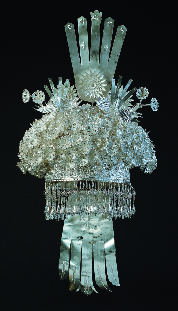 銀飾是苗族服飾文化的重要組成部分,也是苗族貴金屬傳統(tǒng)手工藝發(fā)展水平的集中體現。苗族銀飾以其多樣的品種、奇美的造型和精巧的工藝,向人們呈現了一個瑰麗多彩的藝術世界,展示著一個有著豐富內涵的精神世界。