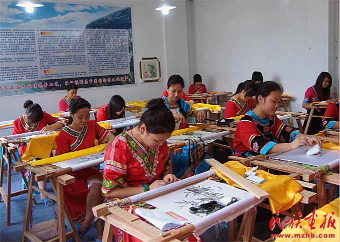 2015年,李紹玉榮獲年度“全國優(yōu)秀農(nóng)民工”。2016年,李紹玉成為重慶非物質(zhì)文化遺產(chǎn)——彭水苗繡的代表性傳承人。從一個打工女,到回家鄉(xiāng)帶動村民致富,再到成為全國人大代表,她說自己深感榮幸和責(zé)任重大?!翱偫韴蟾胬飳iT提到‘加強文物保護利用和文化遺產(chǎn)保護傳承’,我自己的成長,就得益于此。苗繡是苗族人民古老而美麗的技藝,我們有責(zé)任把它世代傳承下去。我們也要在苗族文化與手工藝術(shù)品融合上下功夫,使傳統(tǒng)工藝與市場結(jié)合、傳統(tǒng)元素與現(xiàn)代時尚相結(jié)合?!?/p>