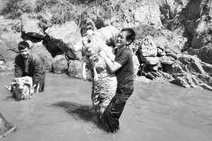 彝族人給綿羊剪毛前要先給它們“洗澡”