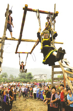 彝族同胞在火把節(jié)上蕩起“觀音秋”劉傳福攝