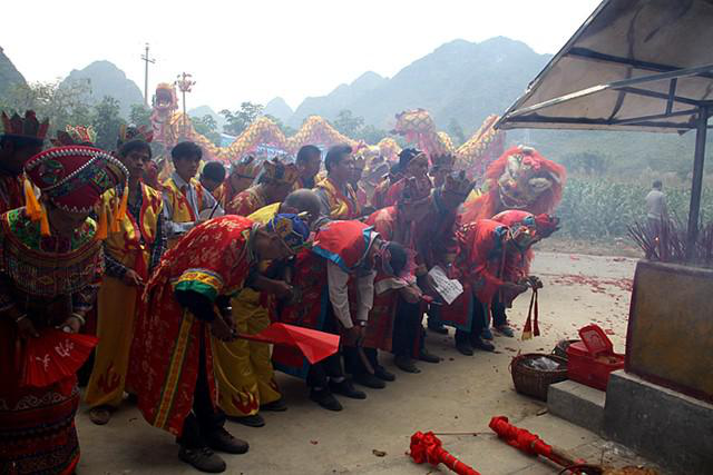 霜降是秋季的最后一個節(jié)氣,也是步入冬季的前奏。每年農(nóng)歷九月,晚稻收割結(jié)束之后的霜降期間,勞作了一年的壯族鄉(xiāng)民們要舉行壯族霜降節(jié)。壯族霜降節(jié)是壯族典型的民俗活動,依托于壯族稻作文化,最初是壯族民眾酬謝自然、慶祝豐收的一種形式,表達(dá)人們祈盼五谷豐登的良好愿望,后發(fā)展成為祭祀民族英雄、進(jìn)行商貿(mào)活動、民俗文化表演的綜合性民俗活動。壯族霜降節(jié)主要流行于廣西壯族地區(qū)的天等、大新、德保、靖西、那坡等縣,以及云南東部等地區(qū),于每年農(nóng)歷霜降后的9天內(nèi)舉行,參加人數(shù)萬余人之多。