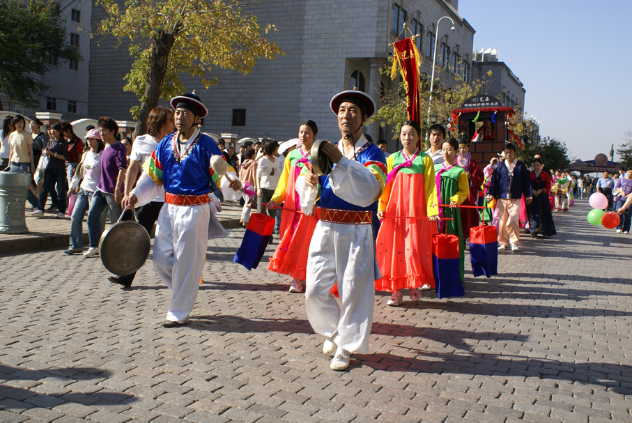 女子婚前穿鮮紅的裙子和黃色的上衣,衣袖上有色彩繽紛的條紋;婚后則穿紅裙子和綠上衣。年齡較大的婦女,可在很多顏色鮮明、花樣不同的面料中選擇。“短衣長裙”,是朝鮮族服飾中最具傳統(tǒng)的服裝。