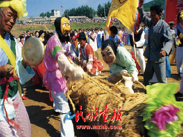 每到端午、中秋等節(jié)日,朝鮮族同胞便利用沙地或草地進行摔跤比賽。摔跤手按年齡分為少年、青年、壯年三級。每次正式比賽都由少年摔跤開場,增加節(jié)日氣氛。比賽時,雙方穿上特制的服裝,各自把約90厘米長的腿繩一端系在腰上,另一端系有圓圈的腿繩跨在右大腿上,以便讓對手握住。雙方以右膝著地,左腿彎曲的姿勢蹲下,相互緊握對方的腿繩,經過一場激烈的角逐,使對方膝部以上身體的任何一個部位先著地者為勝。比賽結束時會由裁判長來宣布最終名次,并由當地政府官員親自將一頭膘肥體壯、披紅掛彩的大黃牛獎給優(yōu)勝者,冠軍得主被人們譽為“跤王”。此時的跤王就像得勝歸來的大英雄,騎著黃牛,繞場一圈,向觀眾致意,現場的家人和觀眾身著民族盛裝載歌載舞,鼓掌歡呼,飲酒慶賀,氣氛熱鬧非凡。