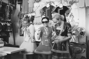 8月28日,“中美大學生聯(lián)合體驗長征之旅”大型活動走進貴州黎平古城。來自美國漢普頓大學的女大學生們,被古城翹街民族服飾店里的侗族服飾深深吸引住了,她們紛紛試穿侗族服飾,并頻頻留影,還各自買下一套侗族夏裝,像侗家姑娘一樣,把侗族的藝術(shù)和文化穿戴在身上。圖為美國女大學生穿著侗族服飾跳起舞來。