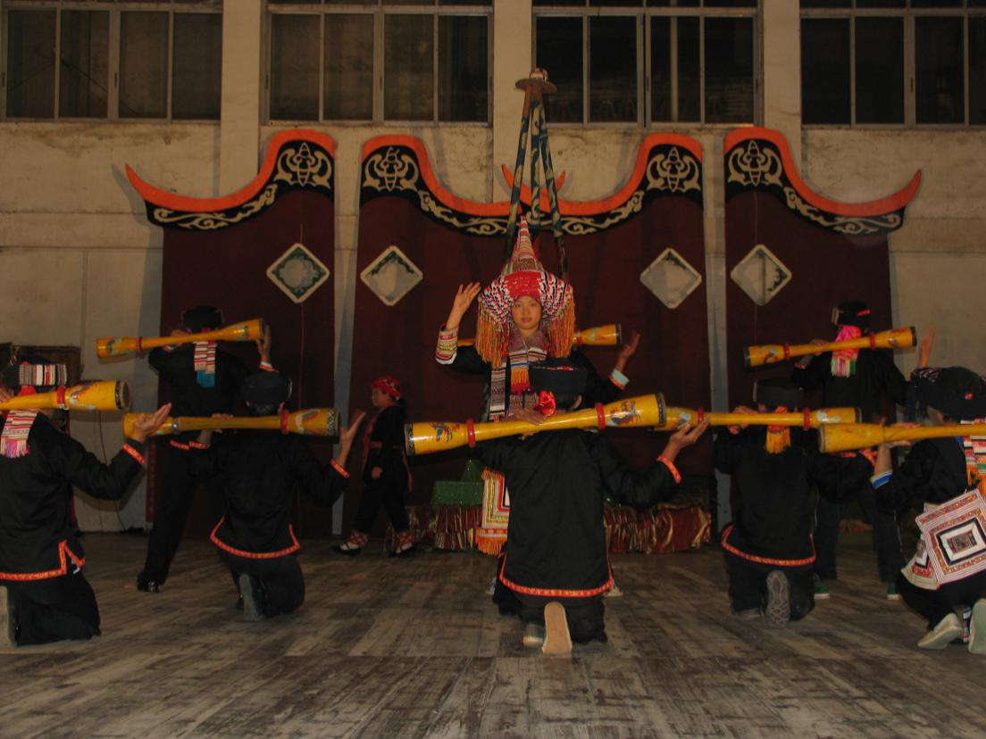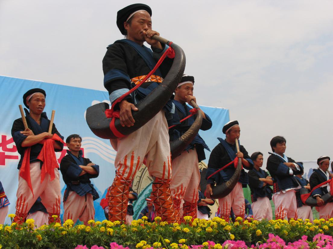 瑤族人民在節(jié)日慶典活動(dòng)上用民族樂(lè)器演出(劉軍攝)