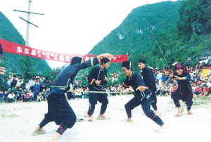 日前,廣西大化瑤族自治縣七百弄鄉(xiāng)和東蘭縣三弄瑤族鄉(xiāng)的布努瑤同胞分別舉行隆重的活動,慶祝自己的民族傳統(tǒng)節(jié)日“祝著節(jié)”?!白V?jié)”,亦稱祖娘節(jié)、二九節(jié)、盤古節(jié)或瑤年,是瑤族人民隆重的節(jié)日之一。這天,布努瑤同胞表演了一臺臺古色古香的文藝節(jié)目。當?shù)馗髯迦罕姾团忇l(xiāng)鎮(zhèn)的農(nóng)民朋友也匯集一堂,和布努瑤兄弟姐妹一道慶賀這個盛大的民族節(jié)日。