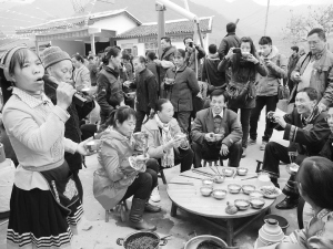 當(dāng)天,觀音鄉(xiāng)水濱村眾鄉(xiāng)親舞龍舞獅迎接嘉賓,通過(guò)祭祀盤王,展示瑤族文化瑰寶《梅山圖》,表演非物質(zhì)文化遺產(chǎn)“吹笙跶鼓舞”、硬氣功斷磚、輕功踩雞蛋、打油茶等活動(dòng),向人們展示了獨(dú)特的瑤族文化魅力?!?/p>