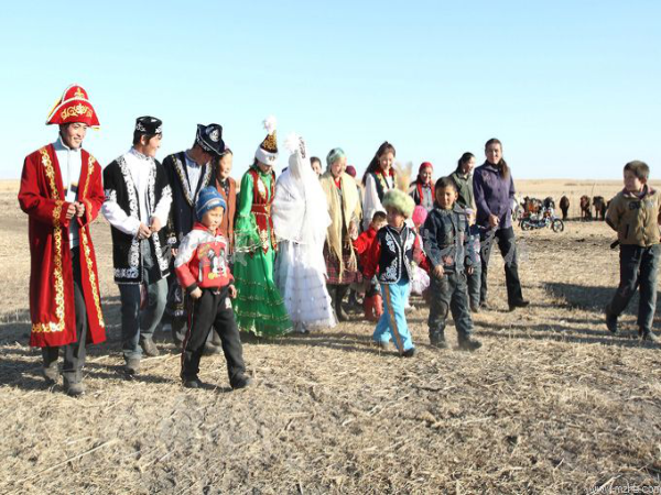 哈薩克族婚禮要經(jīng)過(guò)說(shuō)親、訂婚、吉爾特斯(展示彩禮)、送彩禮、出嫁和迎親等一系列儀式。每次儀式中贈(zèng)送的禮品,按傳統(tǒng)習(xí)俗都少不了馬匹,每次宴請(qǐng)都必有新鮮、肥美的羊肉,迎親隊(duì)伍也是騎馬牽駝,一路歌聲,過(guò)程復(fù)雜隆重、熱烈而又歡快。