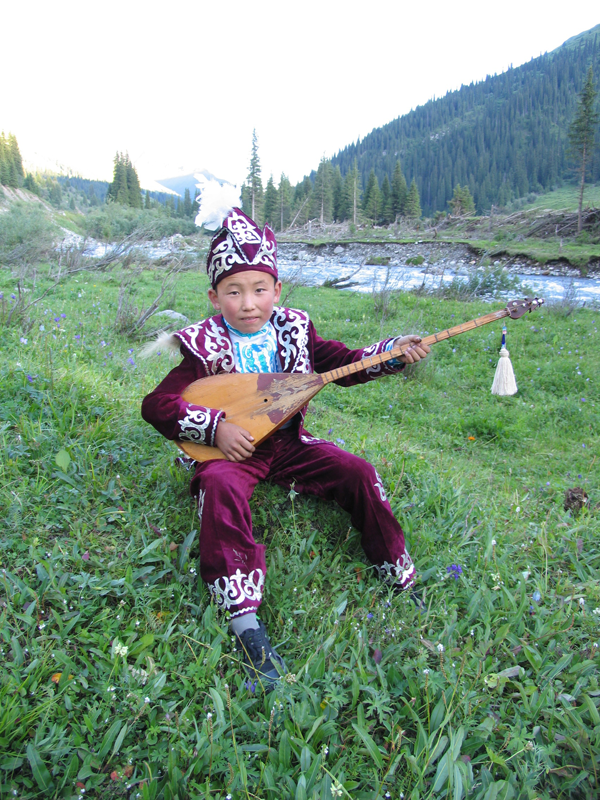 哈薩克族的音樂極具民族特色,樂器種類和樂曲形式也非常豐富。“冬不拉”為彈奏樂器,是哈薩克族民間最流行的傳統(tǒng)樂器,分為高、中、低等十幾種。冬不拉易學易帶,深受廣大哈薩克族人民的喜愛。拉奏樂器以“柯布孜”為代表,演奏起來聲音類似小提琴,但形狀要比小提琴復雜,其上端向里彎,琴腹如勺,腹面張開,背面蒙有羊皮,琴弦是用馬尾或牛筋制做而成的。吹奏樂器主要有“斯伯孜俄”,民間藝人喜好并擅長使用此物,被哈薩克族譽為“心笛”。這種樂器外形酷似豎簫,音色悠揚而柔和。哈薩克族的打擊樂器也有很多,極有特色的是“阿迪托亞克”。這種打擊樂器由兩個組成一對,演奏時互相擊打,其外形似馬蹄,加之所奏出的效果也像馬蹄踩在地面上的聲音,哈薩克族稱之為“馬蹄音”。
