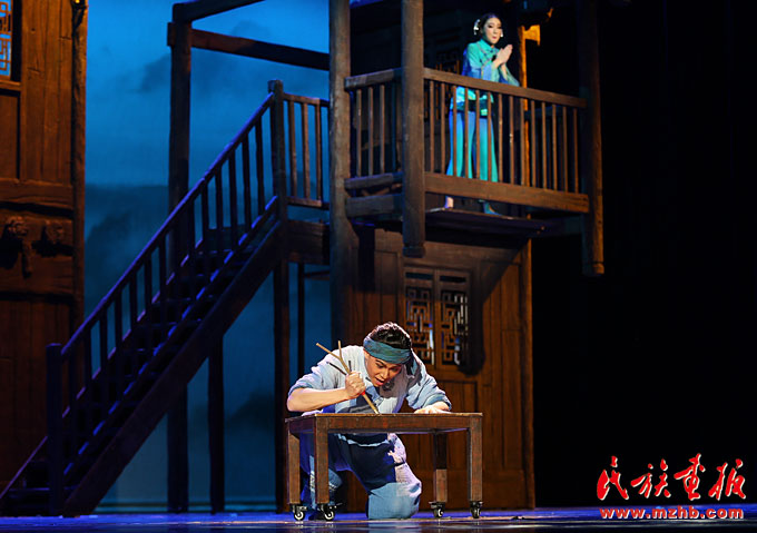 2017年12月28日,來自貴州的首部水族題材舞劇《木樓古歌》在民族劇院上演。舞劇中弘揚的至純至善的品質和捍衛(wèi)家國尊嚴的勇氣、跌宕起伏的劇情和演員們嫻熟到位的表演以及神秘新鮮的民族文化符號,都深深感染著首都觀眾?!赌緲枪鸥琛酚酶哌h的立意和高超的藝術水準為北京歲末的演出畫上了圓滿的句號。