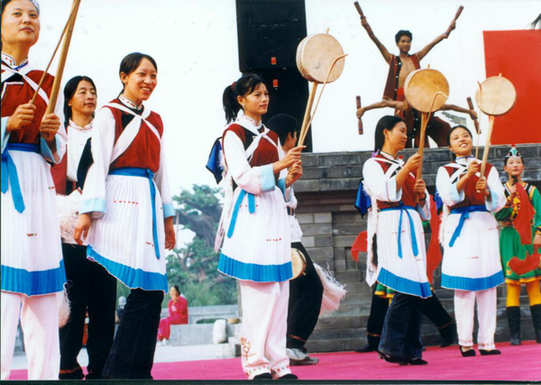 納西族服飾系統(tǒng)依據(jù)納西族人的地域分布,大致可由香格里拉白地、寧蒗永寧和麗江壩區(qū)三個(gè)各具特色的部分所構(gòu)成。
