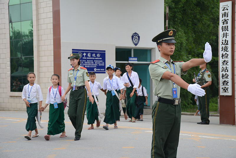 銀井邊境檢查站官兵為緬籍學(xué)生當(dāng)安全員 李富貴/攝