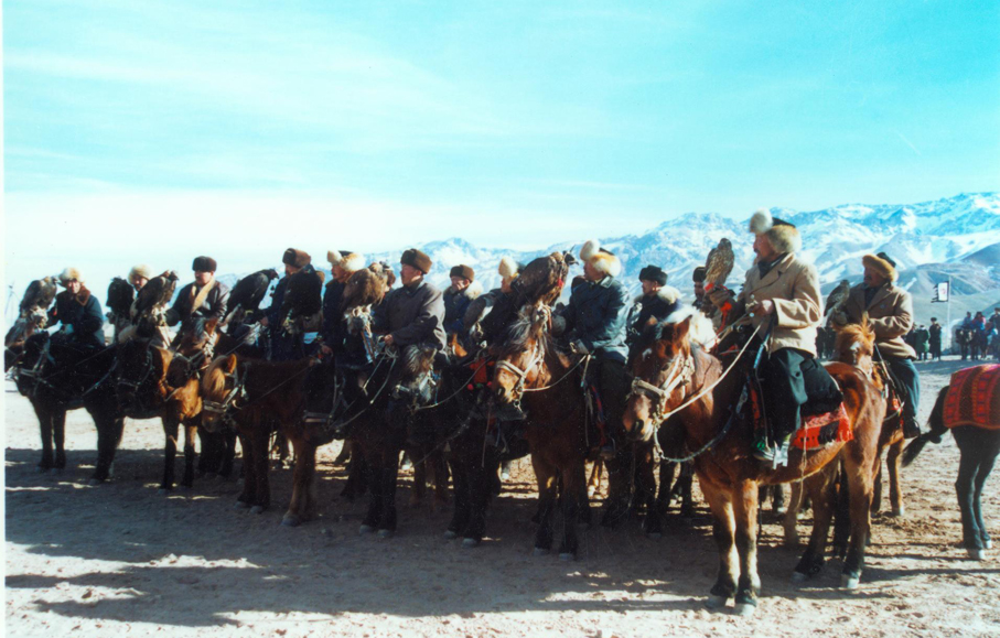 騎馬叼羊是流行于中亞各個(gè)游牧民族的一項(xiàng)體育運(yùn)動(dòng),也是柯?tīng)柨俗巫逡豁?xiàng)傳統(tǒng)的民間體育運(yùn)動(dòng)。叼羊比賽也是源于游牧生活的一項(xiàng)運(yùn)動(dòng),在古代,柯?tīng)柨俗巫宓南让窬幼≡诟呔暤牟菰貐^(qū)從事游牧生活,生存環(huán)境危機(jī)四伏,但是這些地方時(shí)常有兇猛的野獸出沒(méi),人們?cè)谝巴夥拍習(xí)r往往會(huì)遇到野獸的侵?jǐn)_,由于兇猛野獸的速度極快,經(jīng)常在一瞬間就會(huì)沖進(jìn)羊群咬住小羊之后逃竄,為了救回羊羔、挽回?fù)p失,英勇的柯?tīng)柨俗巫迥凶泳蜁?huì)策馬追逐,他們身手矯健,從快速疾馳的馬背上俯身與野獸爭(zhēng)奪獵物,久而久之,叼羊成為了柯?tīng)柨俗巫迥凶颖貍涞姆拍良寄?,衍生出了激烈的賽馬叼羊比賽。