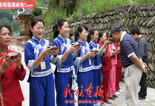 仫佬族的待客之道——熱情的攔路酒 江橋生 攝影 引自民族畫(huà)報(bào)