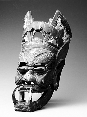 儺面具“山王”是眾多儺面具中的一面。儺面具多為木質(zhì),因它與宗教的緊密關(guān)系,在其制作過程中,融入了制作者的虔誠信仰和精湛技藝,成為木雕工藝在民間的卓越代表。