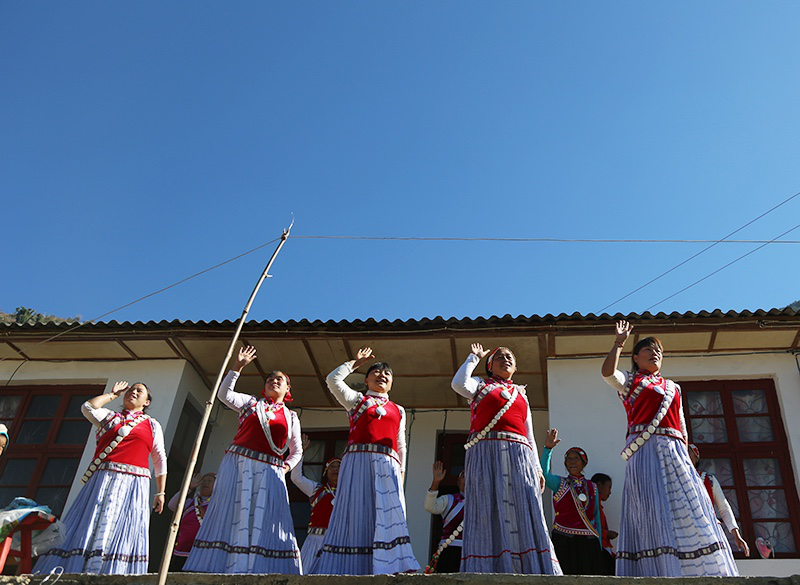 貢山傈僳族、怒族村民以載歌載舞的形式慶祝美好生活