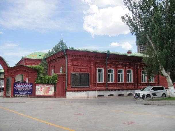 紅樓,二十世紀(jì)初,俄國塔塔爾族商人建造的一座鐵銹紅色俄式建筑,綠色的屋頂與白木質(zhì)的窗欞,形成強烈對比,歐式風(fēng)情的浮雕裝飾、高大氣勢的房屋,都顯示著當(dāng)年的豪華、氣派和時尚。2006年國家列為重點文物保護單位,現(xiàn)在是塔城地區(qū)博物館。