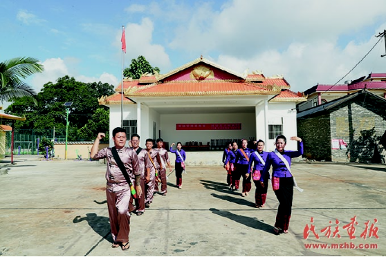 村民在村中廣場跳起歡樂的舞蹈。