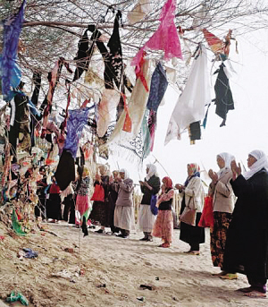 在新疆,尤其是在維吾爾族聚居的南疆,普遍存在類似內(nèi)地廟會(huì)式的麻扎朝拜活動(dòng)。朝拜者面向麻扎傾訴心中的哀怨痛苦,以各種方式表達(dá)自己的祈求:有向麻扎求消災(zāi)避禍的,有求富貴發(fā)財(cái)?shù)模€有求夫妻和睦的,求理想伴侶的,求生兒育女的,求老有所養(yǎng)的,求天降甘霖的……