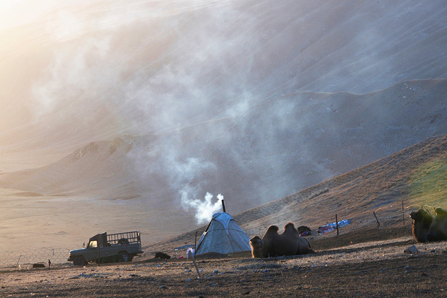 搬進(jìn)城里之后,蒙古人多種擇業(yè)的可能和他們遠(yuǎn)離草原以后的種種行為,很難與數(shù)千年蒙古人的歷史形象與定位相符。彭才一家的狀態(tài)與所用的氈包,讓我有一種久違的親切感。氈包和類似于氈包的種種信息,都在給你描述一種安適、踏實(shí)、畜糞煙火繚繞的氛圍。