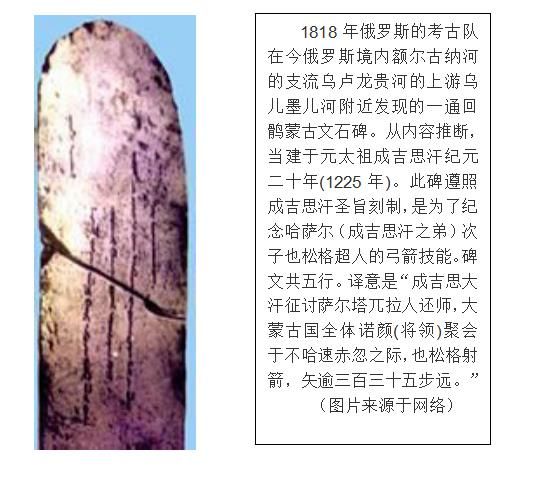 在成吉思汗叱咤風(fēng)云的時(shí)代,中國(guó)北方與宋王朝并立先后存在過(guò)西夏、遼、金、蒙古等少數(shù)民族政權(quán)。這些政權(quán)的主體民族,西夏國(guó)的黨項(xiàng)、遼國(guó)的契丹、金國(guó)的女真、蒙古國(guó)的蒙古,都有本民族語(yǔ)言,最初都沒(méi)有本民族文字。建立政權(quán)后,為了適應(yīng)政治和文化發(fā)展的需要,他們有的創(chuàng)立了本民族文字,如西夏文、契丹字、女真字等等?;佞X西遷之前,與蒙古共同生活在蒙古高原,他們都是游牧民族,經(jīng)濟(jì)文化與許多相似性,語(yǔ)言上同屬阿爾泰語(yǔ)系,分屬蒙古語(yǔ)族和突厥語(yǔ)族,因此蒙古語(yǔ)與維吾爾語(yǔ)的一些日常用語(yǔ)和詞匯是相同或相近的。如黑(哈喇)、黃(霞喇)、金(阿拉泰)在蒙古語(yǔ)與維吾爾語(yǔ)中發(fā)言是一樣的。成吉思汗命塔塔統(tǒng)阿用回鶻字母創(chuàng)建蒙古文字,就是在這樣的時(shí)代背景和回鶻、蒙古的文化聯(lián)系上產(chǎn)生的?,F(xiàn)存用回鶻式蒙古文寫成的文獻(xiàn)中,最早的是1225年的《也松格碑》(成吉思汗石碑)。