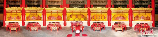 歷代帝王廟景德崇圣殿內(nèi)7開間龕位與188位入祀帝王牌位。(中新社發(fā) 許偉 供圖)
