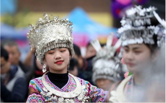 苗族頭飾主要是以銀飾為主。苗族女孩從學會走路開始,父母就會給女兒制作一套苗族民族盛裝和頭飾,苗族女孩一般6歲左右就可以參加每年的民族盛會,并且從小學習化妝技術(shù)。苗族的盛會主要集中在春節(jié)后,也叫坡會,就是山坡上的聚會,這一天苗族姑娘就會穿上珍藏已久的民族盛裝,戴上頭飾,把自己打扮的漂漂亮亮,參加蘆笙踩堂舞,展示自己的美麗一面。