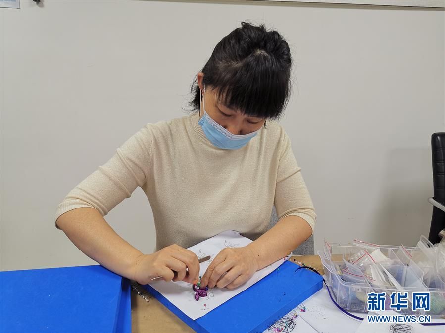 工藝師孫亞杰在為貧困婦女示范如何制作傳統(tǒng)盤扣。(新華社記者魏婧宇  攝影)