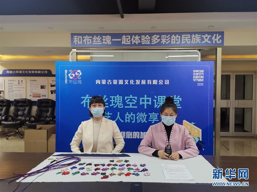 工藝師孫亞杰(左)通過空中課堂為內(nèi)蒙古各地的近500名婦女講授盤扣制作工藝。