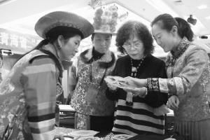 學員們在認真探討“青繡”技藝。 馬天瓊攝