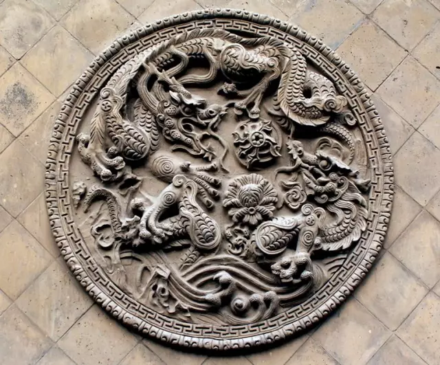 中國磚雕是由東周瓦當(dāng)、空心磚和漢代畫像磚發(fā)展而來的。漢代畫像磚是墓室預(yù)制構(gòu)件的大型空心磚,它是在濕的泥坯上用印模捺印各種圖像。北宋時(shí)形成磚雕,成為墓室壁面的裝飾品。在河南、山西、甘肅等地發(fā)掘的北宋墓室,三面墻壁均以磚雕貼砌而成。墓室內(nèi)的磚雕數(shù)量、質(zhì)量以及所選用的題材,都取決于墓室主人的社會地位。常見的題材有墓室主人夫婦對坐、男仆托盤、侍女執(zhí)壺等,再現(xiàn)了墓室主人生前的生活情景。金代,墓室磚雕的內(nèi)容更加豐富,技藝也有所提高。