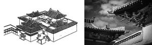 夏魯寺采用漢藏建筑風(fēng)格結(jié)合制式(左),施以綠色琉璃瓦的漢式歇山頂及檐下斗拱(右)。閔天怡供圖