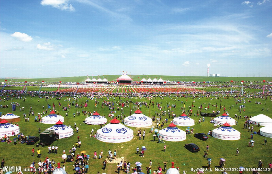 “那達(dá)慕”蒙古語(yǔ)為“娛樂”或“游戲”音譯。為蒙古族的傳統(tǒng)節(jié)日,據(jù)傳始于漢代。一年一度由一旗或數(shù)旗聯(lián)合在農(nóng)歷七八月舉行,每次一至數(shù)日,規(guī)模大小不一。是時(shí)正是草原上氣候怡人、綠草如茵、百花盛開、牛羊肥壯的黃金季節(jié)。節(jié)日期間,牧民們身穿節(jié)日新衣,乘馬驅(qū)車,從四面八方匯聚一處。一時(shí)草原上五彩旗幟如霞云飄掠,蒙古包如點(diǎn)點(diǎn)珍珠,一片節(jié)日氣象。大會(huì)上不僅有傳統(tǒng)的賽馬、摔跤、射箭等競(jìng)技項(xiàng)目,拔河、藍(lán)球、下蒙古象棋等體育比賽,而且還有豐富多彩的文藝演出和琳瑯滿目的物資貿(mào)易交流。如今那達(dá)慕大會(huì)已經(jīng)成為草原上集體育比賽、文化娛樂、經(jīng)濟(jì)貿(mào)易、慶賀豐收為一體的綜合性盛大節(jié)日。