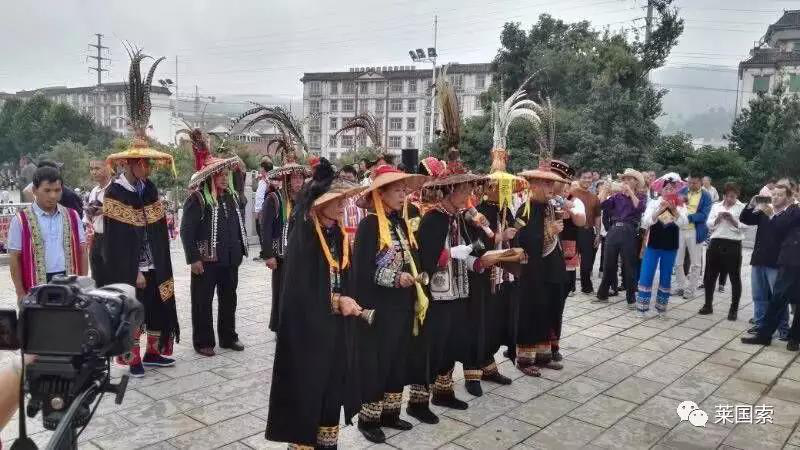祭祖大典隆重、肅敬、莊嚴(yán)。儀式: 1、吹奏長號(hào)樂、鳴禮炮,敬告天地東西南北中五方神抵;2、奏樂(長號(hào)、噴吶),請彝族畢摩上香;3、奏樂(長號(hào)、噴種),敬貢三牲,果品,圣水,豬頭,雞;4、請彝族畢摩撒五谷,念誦《散五谷詞》;5、彝族畢摩向祖先阿普駕幕行跪拜禮,恭誦《祭祖祈福經(jīng)》;6、請各地同胞代表恭誦《祭文》;7、請各位領(lǐng)導(dǎo)、各位來賓、各位朋友全體起立!向彝族祖先阿普篤幕及六祖行叩首禮:一鞠躬!再鞠躬!三鞠躬!禮畢!8、奏樂(長號(hào)、噴吶),恭請貴賓敬獻(xiàn)高香。