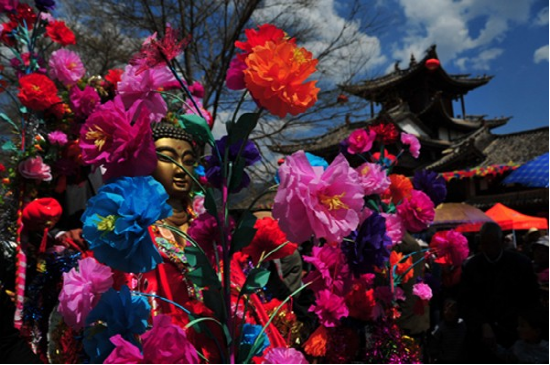 “二月八”是大理州劍川縣有著上千年歷史的白族傳統(tǒng)重要節(jié)慶之一,時(shí)間為每年農(nóng)歷二月初八日。其形成的主要因素是受佛教密宗文化的影響。相傳,農(nóng)歷二月初八日,釋迦牟尼生前為毗羅衛(wèi)國(guó)凈飯王的太子出皇宮到民間查看,看到人世間生、老、病、死等種種疾苦,遂立志創(chuàng)立佛教,普渡眾生。便于當(dāng)晚舍棄皇宮生活和太子的地位,踰城出家修行,尋求解除百姓種種苦難的道路,最后創(chuàng)立了佛教。明、清兩代至今,每年的二月八,廣大佛教信徒聚集在劍川縣城金華鎮(zhèn)和沙溪鎮(zhèn)寺登街,舉行盛大的紀(jì)念活動(dòng),抬著釋迦牟尼的太子雕像,一路鐘鼓齊鳴,焚香誦經(jīng),浩浩蕩蕩,漫游“四門”,常常聚集萬人,一般村嫗老婦也喜歡牽?jī)簬O參加游行,并把自家的孩子裝扮成“太子”,以沾“佛”氣。
