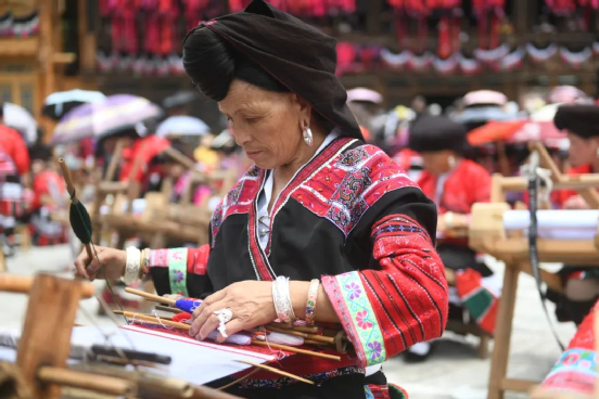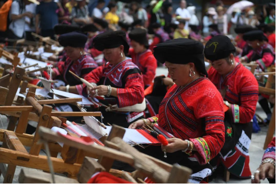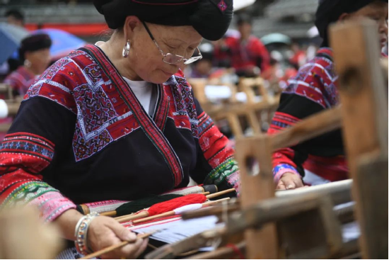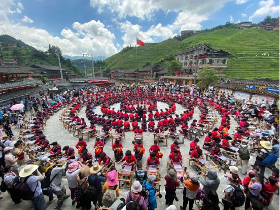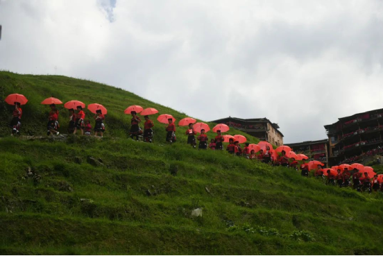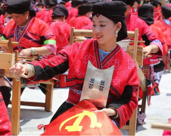 2014年,龍勝瑤族服飾(紅瑤服飾)以其精湛的手工藝和文化底蘊入選國家級非物質文化遺產(chǎn)代表性項目名錄擴展項目名錄。如今的“曬衣節(jié)”已不僅是紅瑤的傳統(tǒng)佳節(jié),“農(nóng)歷六月六,廣西龍脊看紅衣”等曬衣節(jié)系列活動已成為桂林山水游的一張名片,讓各地游客充分感受多姿多彩的民族風情。紅瑤同胞們用自己獨特的方式,為中國共產(chǎn)黨成立100周年獻上自己的祝福。