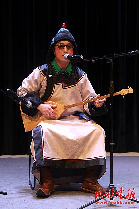 阿勒泰地區(qū)烏梁海突兀里傳承人巴特吐爾表演《烏云孟根哈達森》。