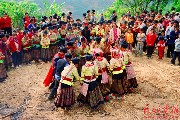 德昌傈僳族婚禮上男女青年的“打跳”“蹢腳舞” 胡小平攝影 引自民族畫報