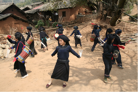 在雙江,有一個(gè)偏遠(yuǎn)的小山村,因這里“出產(chǎn)”蜂桶鼓和蜂桶鼓舞而遠(yuǎn)近聞名,它就是邦丙鄉(xiāng)南直村。蜂桶鼓和蜂桶鼓舞是雙江布朗人的獨(dú)門絕活,完全屬于雙江布朗人。蜂桶鼓源于它的形狀像民間養(yǎng)蜂的蜂桶而得名,而蜂桶鼓的由來卻充滿了神秘的傳奇色彩。相傳: