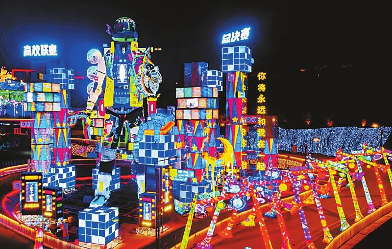 2月22日晚,第27屆自貢國(guó)際恐龍燈會(huì)從“云”上轉(zhuǎn)為線(xiàn)下,在中華彩燈大世界璀璨綻放。