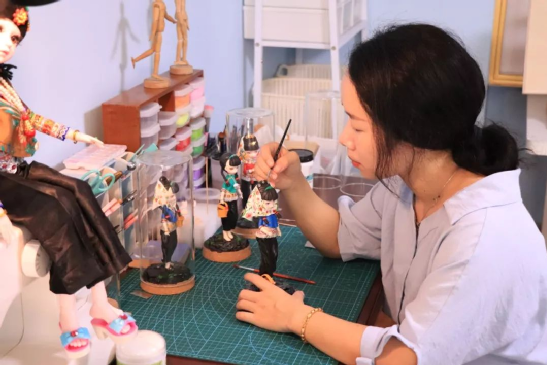 讓人驚艷的,還原度無比高的作品人物服飾,這其中還有冰冰媽媽的一些的建議呢,雕雕琢琢,便有了生動(dòng)形象的這些精致作品。聊起整個(gè)創(chuàng)作過程的冰冰,笑盈盈地說:創(chuàng)作粘土惠女作品,是一件讓我感到滿足和幸福的事情。之后也會(huì)持續(xù)創(chuàng)新,精益求精地進(jìn)行創(chuàng)作。