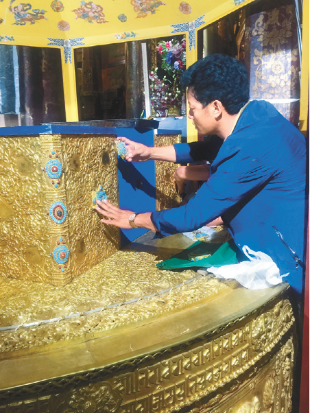 “大昭寺壇城制作過程中,我每時每刻都要保持精力集中,要小心翼翼、精精細細地完成每道工序、每個細節(jié),才可能讓這件作品成為可以留傳久遠的精品?!贝胃抡f,作為祖輩都在傳承佛像金屬鍛鑄造技藝的工藝匠人來說,這樣的機會是可遇而不可求的。