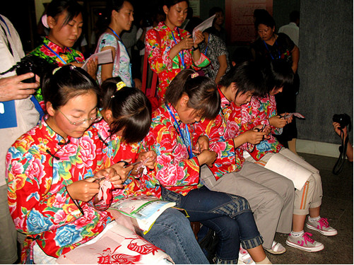 內(nèi)蒙古和林格爾剪紙是中國(guó)北方剪紙最具代表性的剪紙文化遺存之一,是由世代生活在和林格爾地區(qū)的農(nóng)牧民勞動(dòng)?jì)D女為主體創(chuàng)造的,經(jīng)過(guò)代代傳承發(fā)展,成為承載本土民族文化基因的重要的非物質(zhì)文化。二十世紀(jì)七、八十年代以來(lái),隨著經(jīng)濟(jì)社會(huì)向工業(yè)文明的急速轉(zhuǎn)型,人們的生產(chǎn)、生活方式和觀念發(fā)生了重大轉(zhuǎn)變,和林格爾剪紙面臨消亡的境地。老一輩和林格爾民間剪紙傳承人大都生活窘困,有許多已相繼辭世,她們長(zhǎng)達(dá)七、八十年藝術(shù)實(shí)踐所形成的這一古老文化傳承也因此面臨人亡藝絕,而年輕一代剪紙隊(duì)伍又尚未形成,和林格爾剪紙的發(fā)展出現(xiàn)了青黃不接的瀕危狀況。帶著全社會(huì)的關(guān)注,1998年7月10日,在時(shí)任和林格爾縣委宣傳部長(zhǎng)姚子明同志的支持下,和林格爾縣成立了內(nèi)蒙古自治區(qū)第一個(gè)旗縣剪紙學(xué)術(shù)組織——和林格爾剪紙學(xué)會(huì)。和林格爾剪紙學(xué)會(huì)的成立,是和林格爾剪紙文化事業(yè)發(fā)展的一個(gè)里程碑和轉(zhuǎn)折點(diǎn)。多年來(lái),和林格爾剪紙學(xué)會(huì)克服困難,深入搶救、發(fā)掘、整理和保護(hù)了縣境一大批珍貴的原生態(tài)剪紙遺存和老一輩剪紙傳承人。從1994年到2010年,共已累計(jì)搶救、發(fā)現(xiàn)珍貴的原生態(tài)和林格爾剪紙七萬(wàn)余幅,發(fā)現(xiàn)和保護(hù)老一輩剪紙傳承人2600余人,其中有140余名70歲以上的老一輩剪紙傳承人,學(xué)會(huì)做為重點(diǎn)搶救、考察對(duì)象而開(kāi)展了全年跟蹤式搶救、保護(hù)和記錄。和林格爾剪紙學(xué)會(huì)對(duì)已發(fā)現(xiàn)的老中年剪紙傳承人給予物質(zhì)獎(jiǎng)勵(lì)和精神關(guān)懷,激活了人們對(duì)于剪紙傳承的積極性和創(chuàng)作熱情,以農(nóng)村婦女為主體的傳承群體又重新拿起剪刀,開(kāi)始了剪紙的傳承和傳播。多年來(lái),和林格爾剪紙學(xué)會(huì)在段建珺會(huì)長(zhǎng)的帶領(lǐng)下,以“讓老大娘們重新拿起剪刀,讓年輕一代傳承剪紙”為宗旨,積極開(kāi)展各類(lèi)剪紙活動(dòng),努力探索剪紙?jiān)谛滦蝿?shì)下的教育傳承和發(fā)展工作,涌現(xiàn)出以張花女、段建珺等為代表人物的一大批才華橫溢,在國(guó)內(nèi)外有影響的杰出剪紙傳承人和經(jīng)典剪紙作品。百歲剪紙大師張花女出生于清代光緒年末年,剪紙學(xué)會(huì)發(fā)現(xiàn)她時(shí),老人已是96歲高齡。在學(xué)會(huì)的幫助下,她重新拿起剪刀,傳承和創(chuàng)作了大量剪紙,堪稱(chēng)珍品。張花女的作品,將剪和紙的特性發(fā)揮到了幾盡完美的境界,圓潤(rùn)而不浮華,凝重而不果板,簡(jiǎn)約而不單簿,通俗而不失典雅。她剪的《魚(yú)龍變化》、《蒙人進(jìn)城》、《碾場(chǎng)》等作品,反映了遠(yuǎn)古時(shí)期仰韶文化與紅山文化、中原文明與草原文明在該區(qū)域碰撞、交流、融合的歷史遺存,具有很高的藝術(shù)考古價(jià)值。在長(zhǎng)達(dá)一個(gè)多世紀(jì)生命的最后幾年中,張花女用剪刀和紅紙創(chuàng)造了一個(gè)當(dāng)代中國(guó)剪紙的神話(huà)。